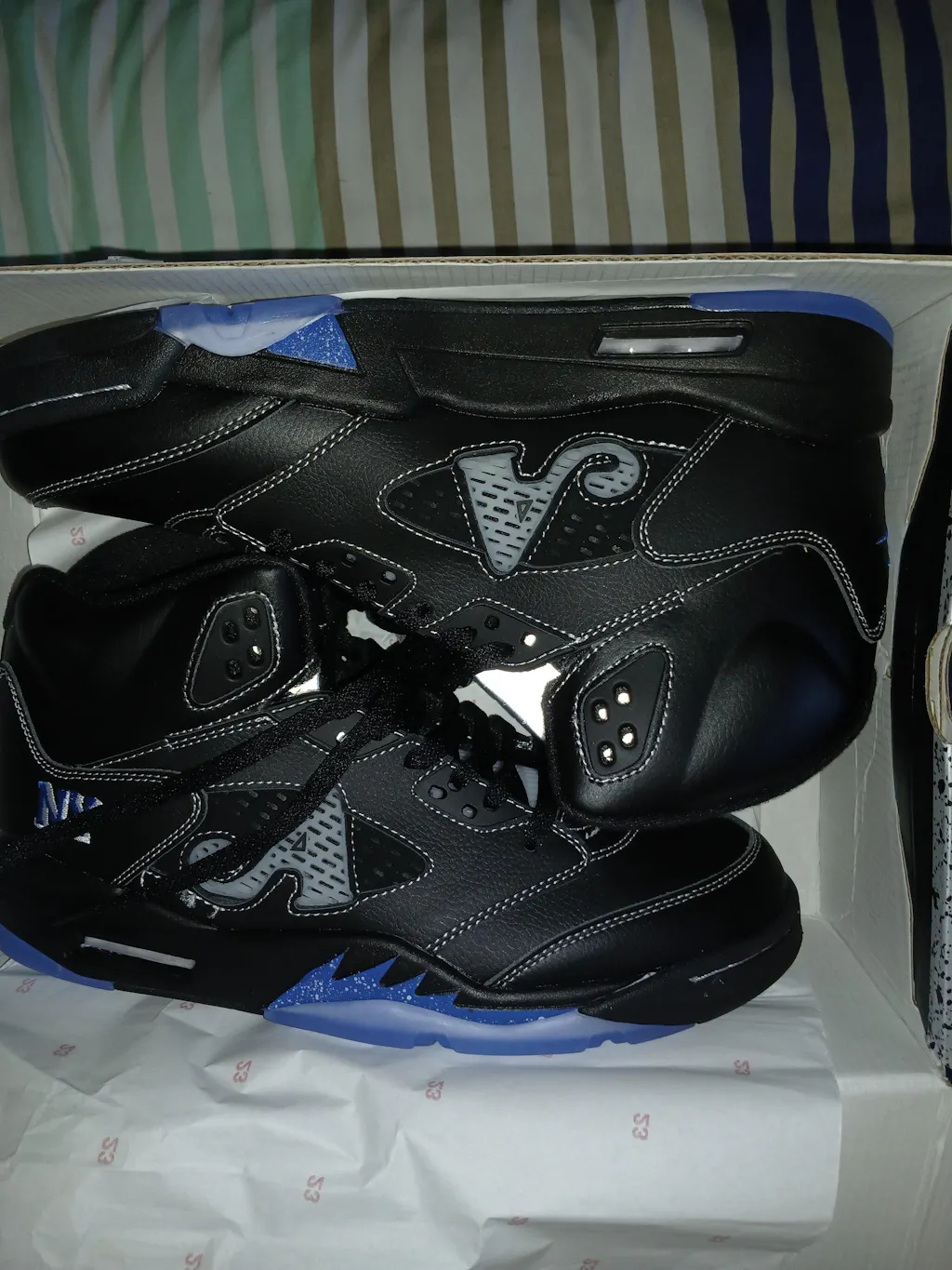 With another special collaboration, Awake NY teams up with Jordan Brand to commemorate the 35th anniversary of the legendary Air Jordan 5. Reimagining Tinker Hatfield's 1990 design, this edition exhibits the AJ5 through the lens of a brand deeply connected to New York's rich cultural landscape throughout all the boroughs. The jagged midsole, bump-out collar and clear vented panels fuse with a premium black leather upper. Racer Blue accents lend a pop of energy to the iconic design.